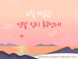 고객지원 업무는 진행되지 않으나 원활한 서비스를 이용하실 수 있도록 서버 관리는 24시간 이루어지며 긴급사항에 대처할 수 있도록 하겠으니 문의는 홈페이지를 이용해 주시기 바랍니다.